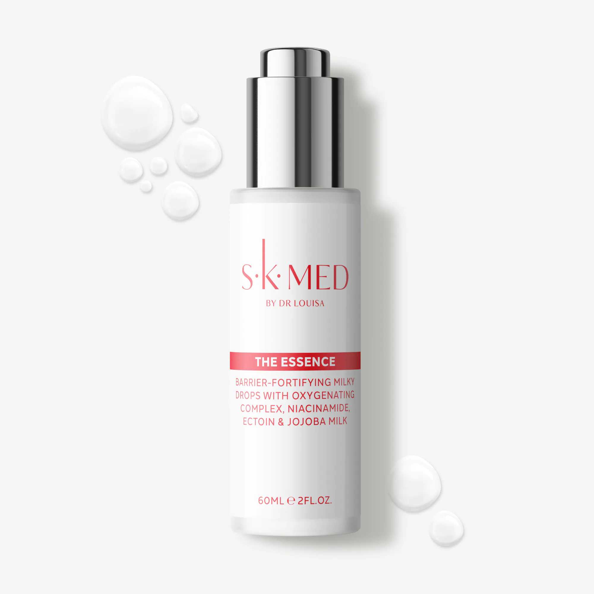Barrier-fortifying milky drops with oxygenating complex, niacinamide, ectoin and jojoba milk.